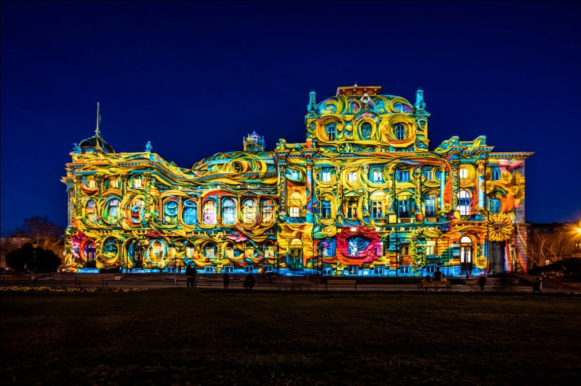 Ispred Hrvatskog narodnog kazališta, postavljena je instalacija “Colopera“, koja kroz igru svjetla i boja unosi nadrealni doživljaj u klasičnu arhitekturu. HNK, kao jedan od najvažnijih kulturnih centara u Zagrebu, poslužit će kao platno za vizualne projekcije koje su osmislili FOL International i Daniel Margraf iz Njemačke. Ova instalacija ne samo da naglašava ljepotu kazališne zgrade, već i simbolično povezuje klasičnu umjetnost s novim digitalnim medijima.