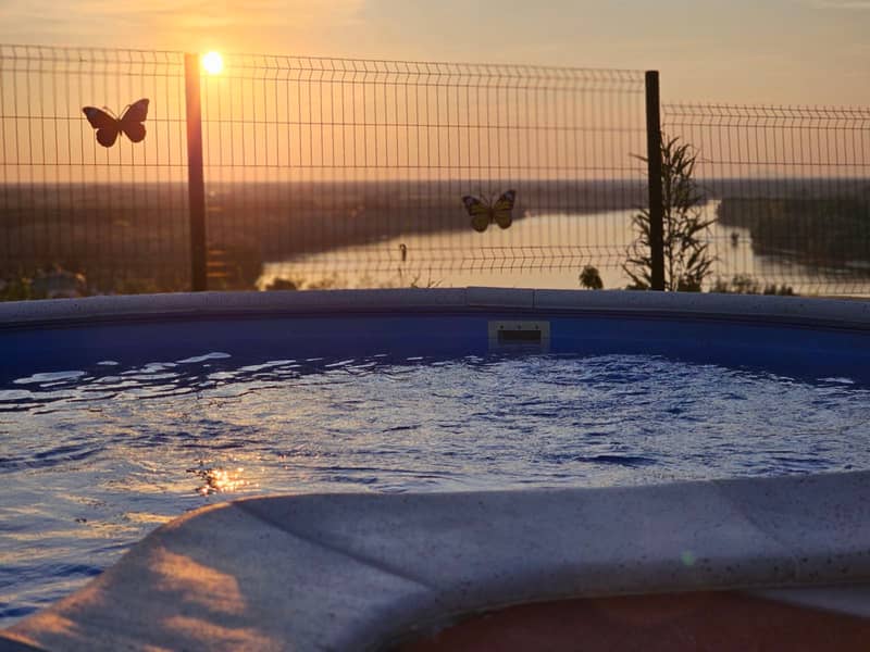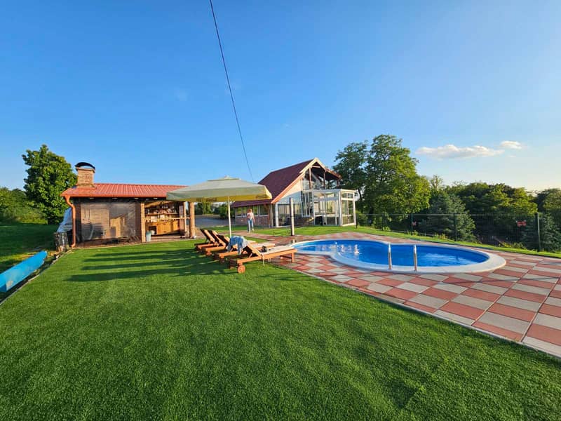 Den Gästen stehen ein Außenpool, eine Sauna und ein Whirlpool zur Verfügung, die Entspannung und Privatsphäre garantieren. Der überdachte Grillbereich eignet sich perfekt für gesellige Abende mit Blick auf die Donau und die umliegende Landschaft. Der großzügige Garten und die natürliche Umgebung vermitteln ein Gefühl von Freiheit und Abstand vom Alltag.