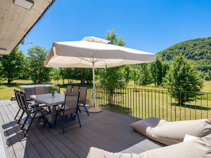 Im Außenbereich stehen ein überdachter Grillplatz und zwei überdachte Parkplätze zur Verfügung. Der Außenwhirlpool auf der Terrasse steht vom 1. Mai bis zum 1. Oktober zur Verfügung. Abseits von Hauptstraßen und Nachbarhäusern bietet MonsAlbius Lodge völlige Privatsphäre. Die Kombination aus traditionellen Architekturmerkmalen und modernem Design sorgt für Komfort, Ruhe und ein einzigartiges Erlebnis im Velebit und Lika.