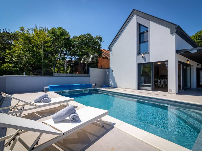 Vineyard Home 14 is located near Ivanec, in a peaceful green setting beneath Mount Ivanščica, offering a blend of modern comfort and natural surroundings. The house accommodates up to 8 guests, making it perfect for families, friends, or small groups. Guests can enjoy a private seasonal pool (available from mid-April to mid-October) and a shared sauna for complete relaxation.