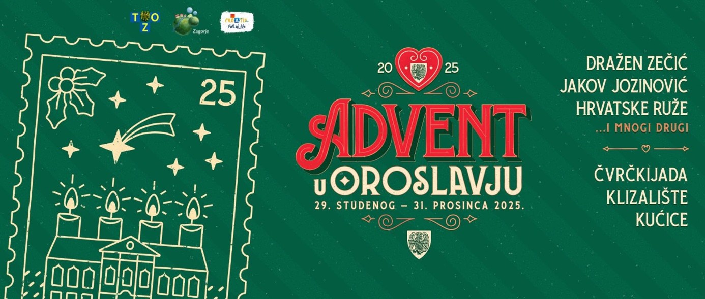This year’s Advent in Oroslavje is marked by musical, cultural and gastronomic events. The program features performances by well-known artists, including Dražen Zečić, Jakov Jozinović and Hrvatske ruže, while many other performers will further enrich the festive atmosphere. A special charm of the program comes from the traditional Čvarkijada, which brings together lovers of local specialties and creates an authentic atmosphere of socializing, competition, and shared enjoyment of Zagorje cuisine. In addition to music, children will have fun on the ice rink, and Advent stalls will not be lacking.