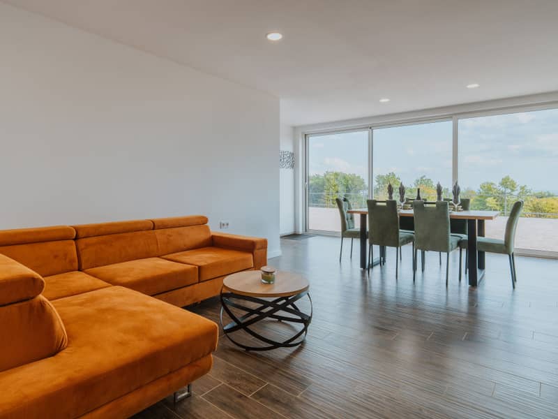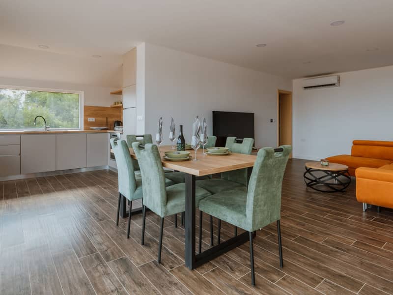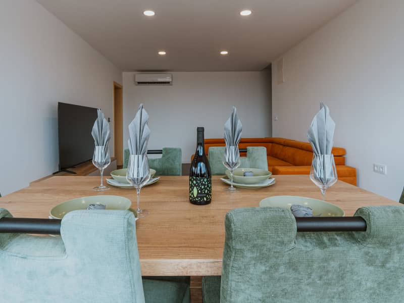 Kuća je kapaciteta za 4+2 osobe te nudi prostran i moderno uređen interijer. Posebnu vrijednost daje privatna sauna, kao i kada u spavaćoj sobi s pogledom na vinograde i prirodu, što omogućuje dodatnu razinu opuštanja i uživanja.