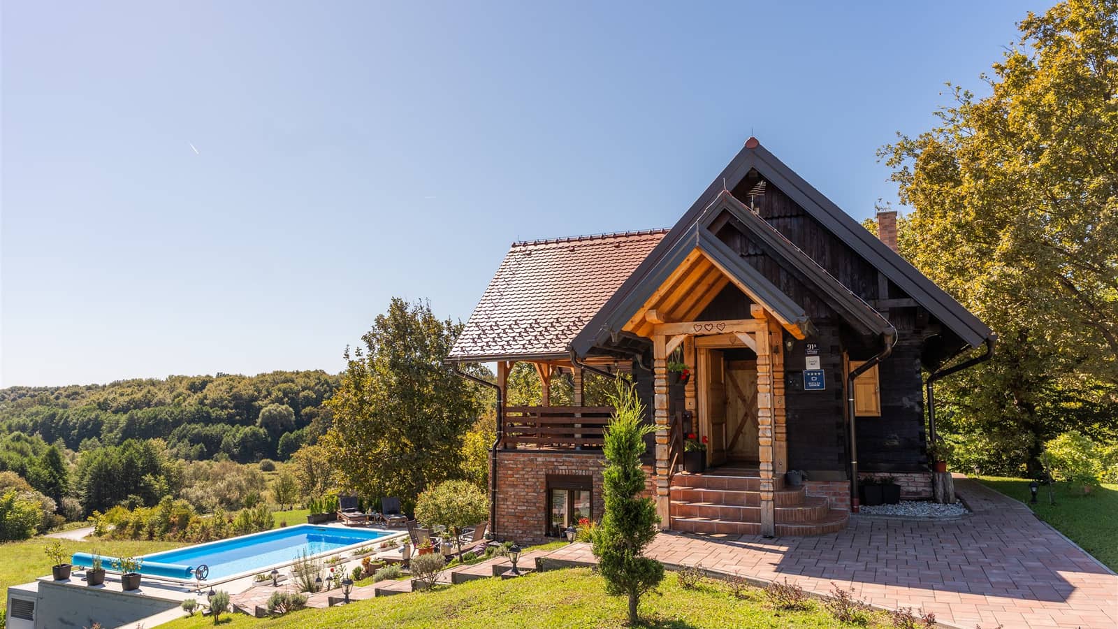 Kuća Tri srca smještena je u predivnoj prirodi Vukomeričkih gorica, okružena šumama i zelenilom. Spoj tradicijske i moderne gradnje čini ovu kuću idealnom za obitelji s djecom, a mali kućni ljubimci su dobrodošli.