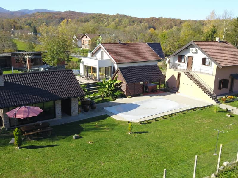 Za ljubitelje aktivnosti u ponudi su sportski tereni za odbojku, badminton i mali nogomet, a prostrano dvorište pruža dovoljno prostora za igru i rekreaciju. S balkona i terase pruža se prekrasan panoramski pogled na Park prirode Papuk.