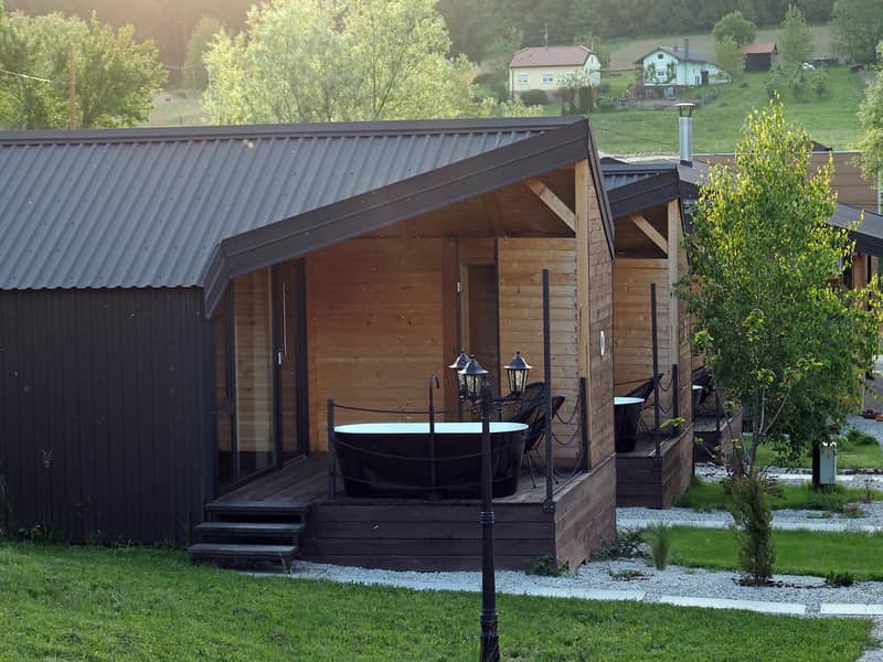 Resort čine moderno uređeni glamping bungalovi, idealni za boravak dvije osobe. Svaki bungalov ima vlastitu terasu na kojoj se nalaze privatna sauna i kada, uključene u cijenu boravka, što osigurava potpuni komfor i intimno wellness iskustvo. Kućni ljubimci su dobrodošli uz nadoplatu, dok se boravišna pristojba plaća na licu mjesta.